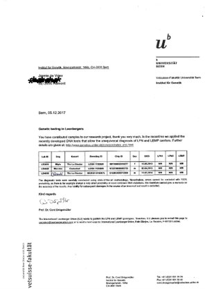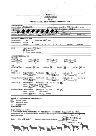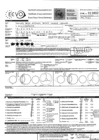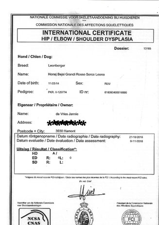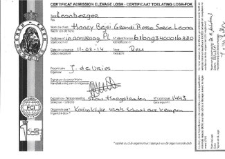 Toelatingscertificaat Honey Bejsi Grandi Rosso Serce Leona.